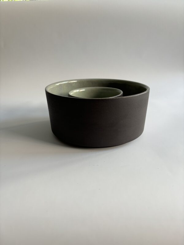 Siyah stoneware çamurundan üretilmiş el yapımı 2’li kahvaltı seti. Yüksek derecede pişirim yapılmıştır (1220 derece).Bulaşık makinesinde yıkanabilir. Fırın ve mikrodalgaya girebilir.